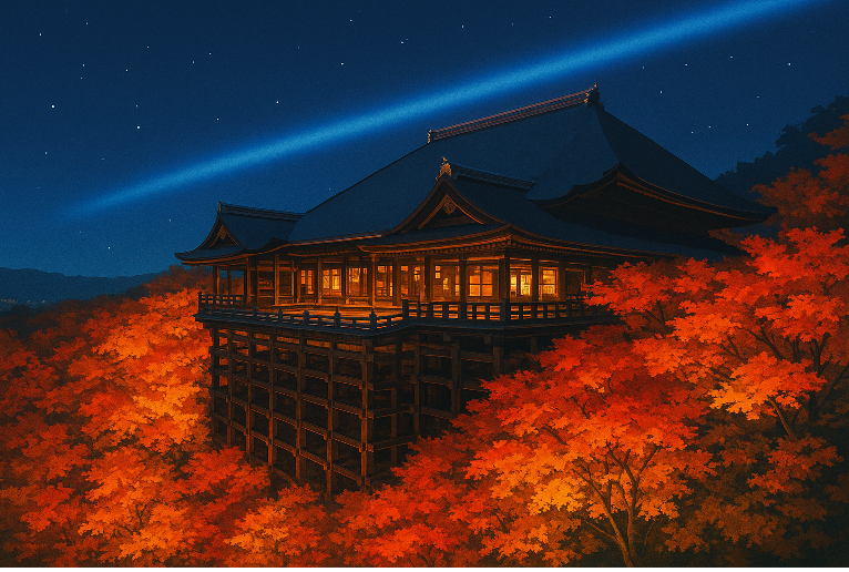 As autumn deepens in Kyoto, the ancient temple of Kiyomizu-dera—one of Japan’s most iconic World Heritage Sites—has begun its annual special night viewing. During this limited period, the temple grounds glow brilliantly as nearly 1,000 maple trees and the famous Kiyomizu Stage are illuminated by about 500 lights, creating a spectacular scene that floats gently above the hillside.