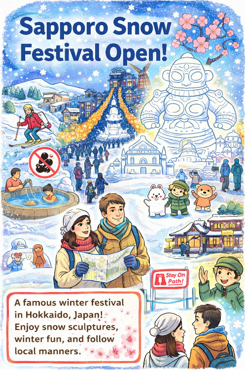 Winter in Hokkaido offers many pleasures for tourists. In addition to the snow festival, visitors can enjoy skiing, hot springs, local seafood, and snowy city scenery. The cold weather becomes part of the charm, making the experience truly unique.