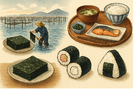 多くの日本人にとって、海苔は単なる寿司を巻くためのものではありません――それは日々の主食の一部であり、湯気を立てるご飯にそっと寄り添う、伝統的な朝食に欠かせない小さくも本質的な存在です。紙のように薄く、漆黒で、乾燥してパリッとした海苔は、何世紀にもわたり静かに日本の食文化に根を張ってきました。