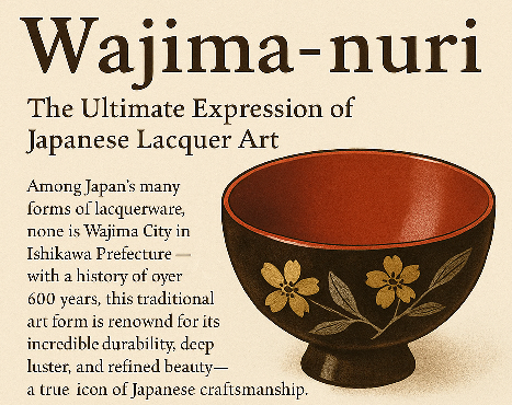 Among Japan’s many forms of lacquerware, none is more admired or celebrated than Wajima-nuri, the exquisite craft of Wajima City in Ishikawa Prefecture. With a history of over 600 years, this traditional art form is renowned for its incredible durability, deep luster, and refined beauty—a true icon of Japanese craftsmanship.