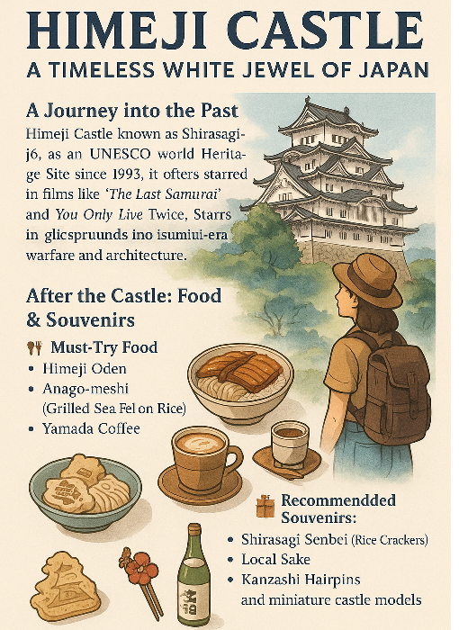 Himeji Castle is more than just a historical monument—it’s an experience. From its majestic walls to the warm local hospitality, it embodies the soul of traditional Japan. Whether you’re a first-time visitor or a seasoned traveler, Himeji promises a castle experience unlike any other.