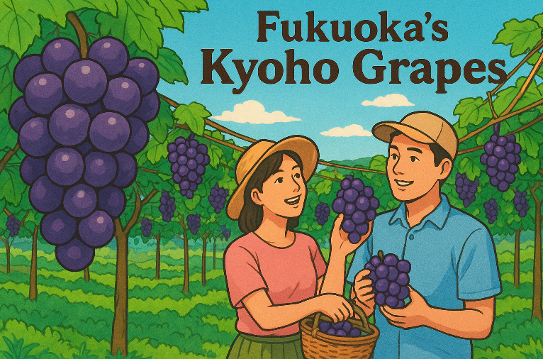 Among Japan’s many fruits, the Kyoho grape stands out as a true favorite. With its impressive size, deep purple skin, and sweet, juicy flesh, the Kyoho has been beloved by Japanese families for generations. What many travelers may not know is that this grape was first cultivated in Tanushimaru, a town in Fukuoka Prefecture, making the region the proud birthplace of Japan’s “King of Grapes.”