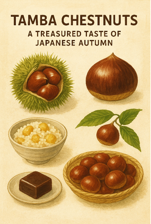 When autumn arrives in Japan, one of the most celebrated seasonal treats is the Tamba Chestnut (丹波栗, Tamba-guri). Grown in the fertile valleys and gentle mountains of Kyoto’s Tamba region, these chestnuts are among the largest and most flavorful in the world. Their rich sweetness and soft texture have earned them a reputation as a delicacy for centuries, even being offered as tribute to the Imperial Court during the Edo period.