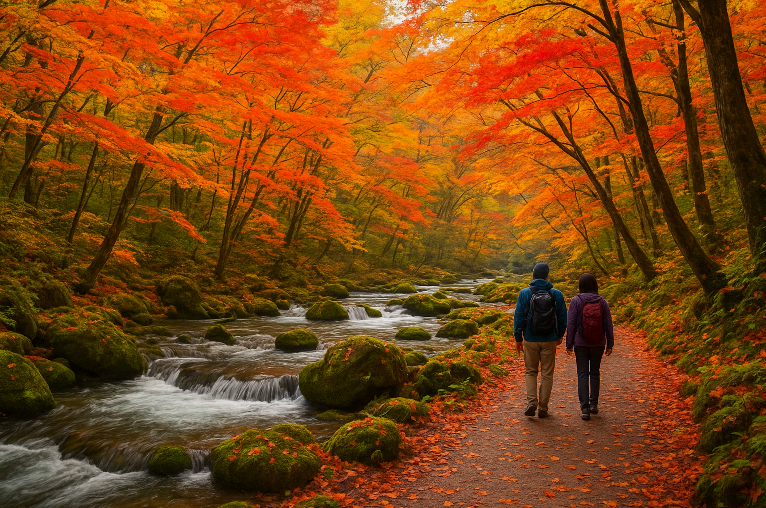 八戸市や青森市からバスで簡単にアクセスできる奥入瀬渓流は、単なる景色ではなく、多感覚的な旅を提供します。自然の驚異と現代的なウェルネス体験の両方を求める旅行者にとって、秋の奥入瀬は日本の北の美しさに触れる爽快な逃避行となるでしょう。